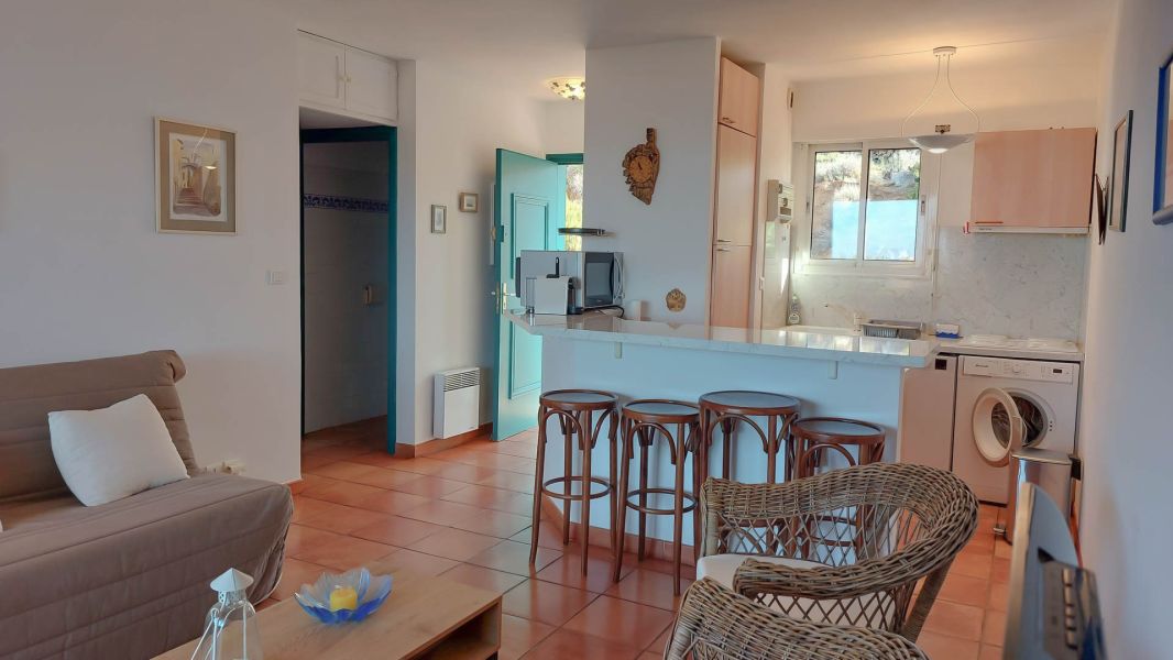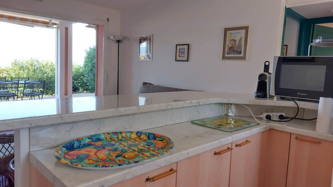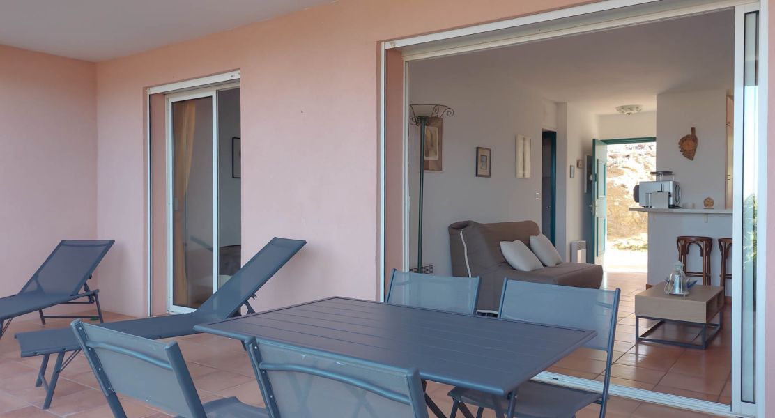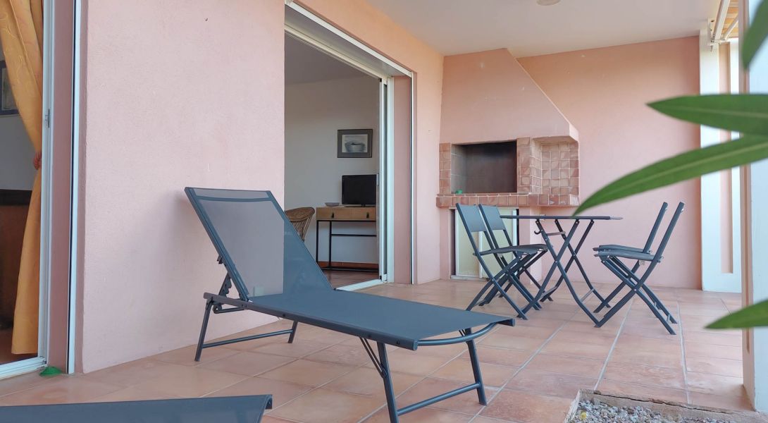 Bel appartement climatisé de 42m² dans une résidence au calme, bel extérieur avec terrasse couverte, vue sur mer et montagne.