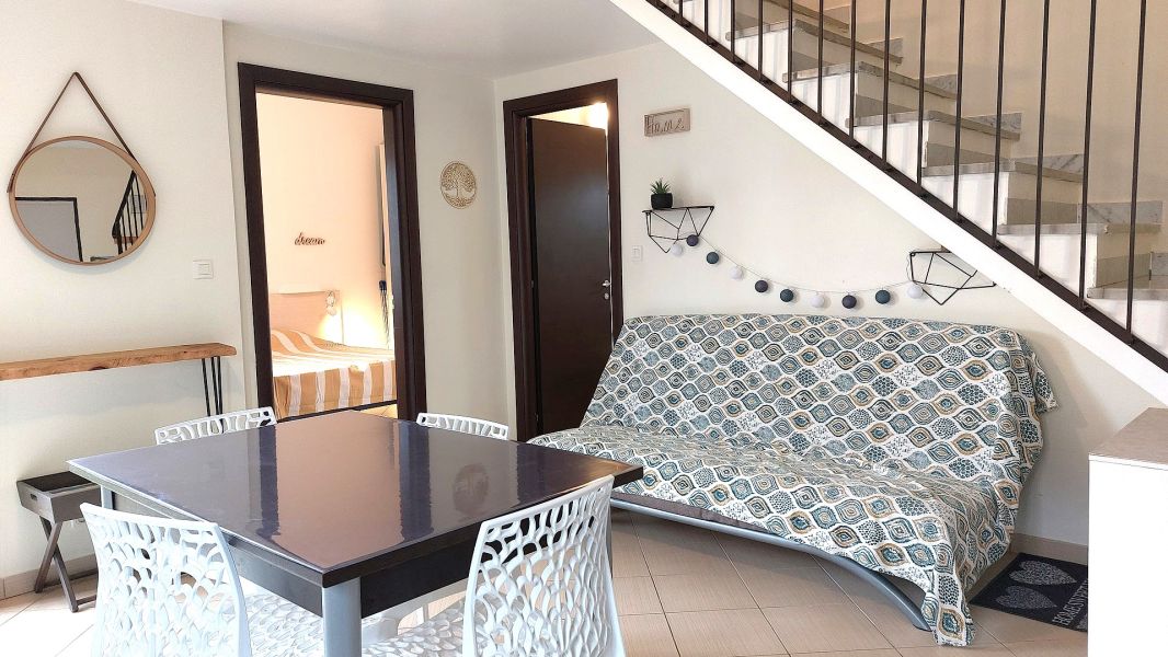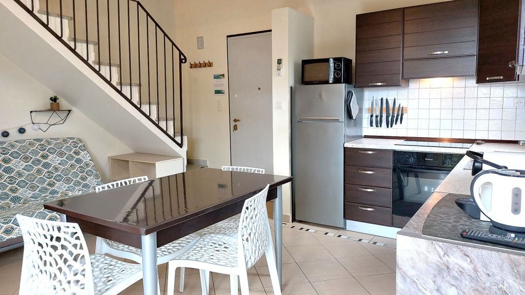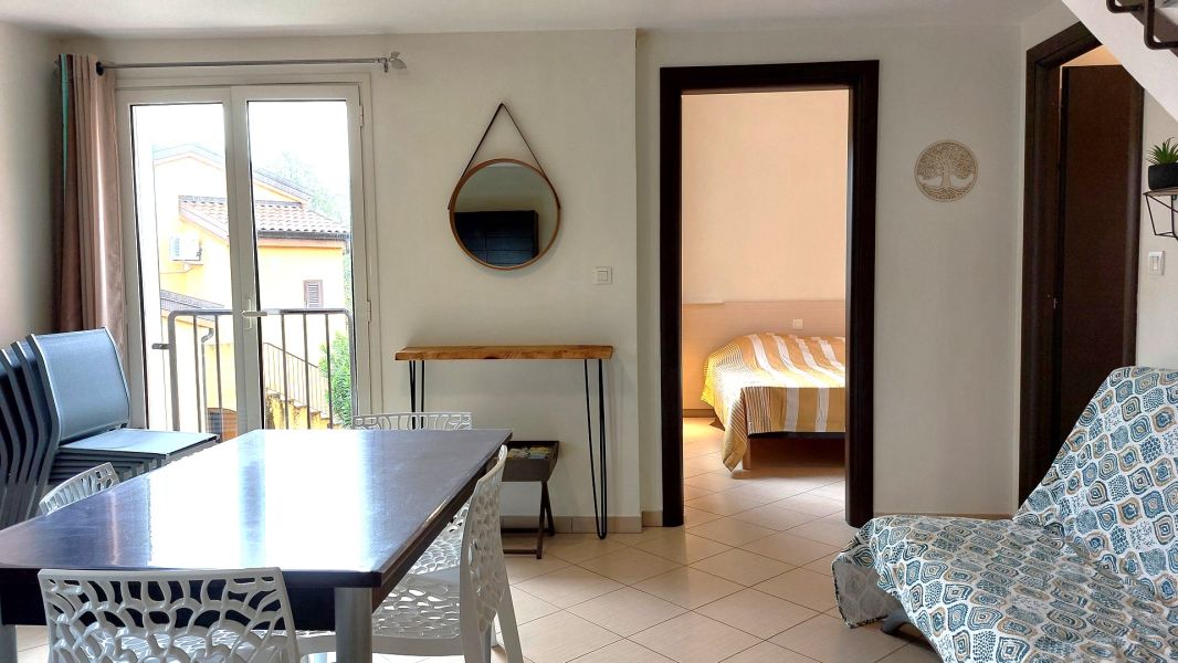 Bel appartement de 45m² climatisé en duplex ce situant au premier, dans une résidence avec piscine commune, 200m de la plage de Lozari, proche des commerces et des restaurants.
