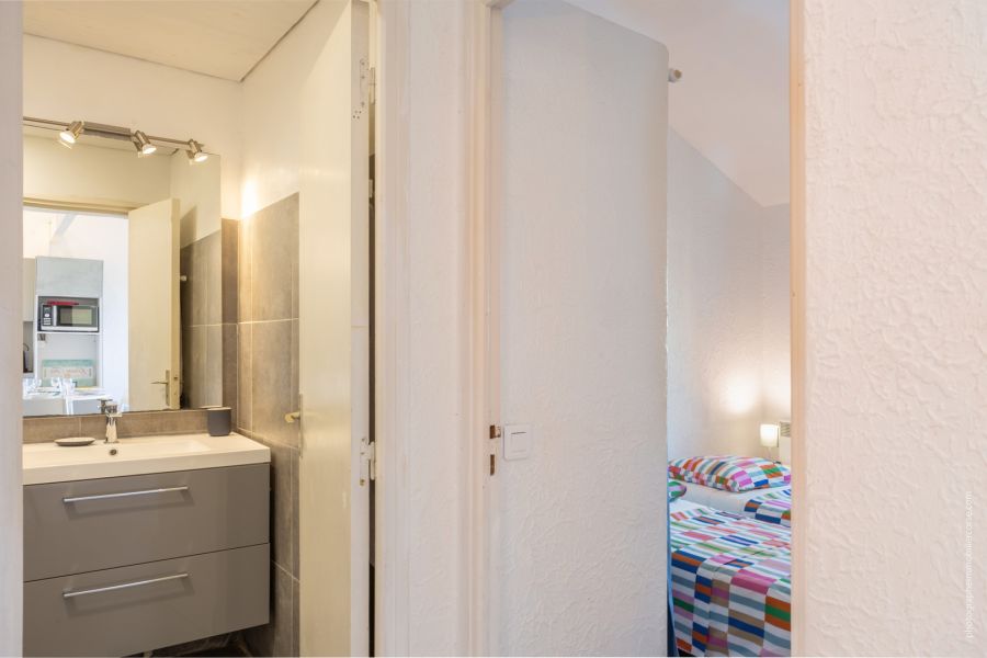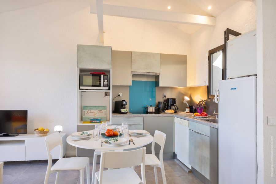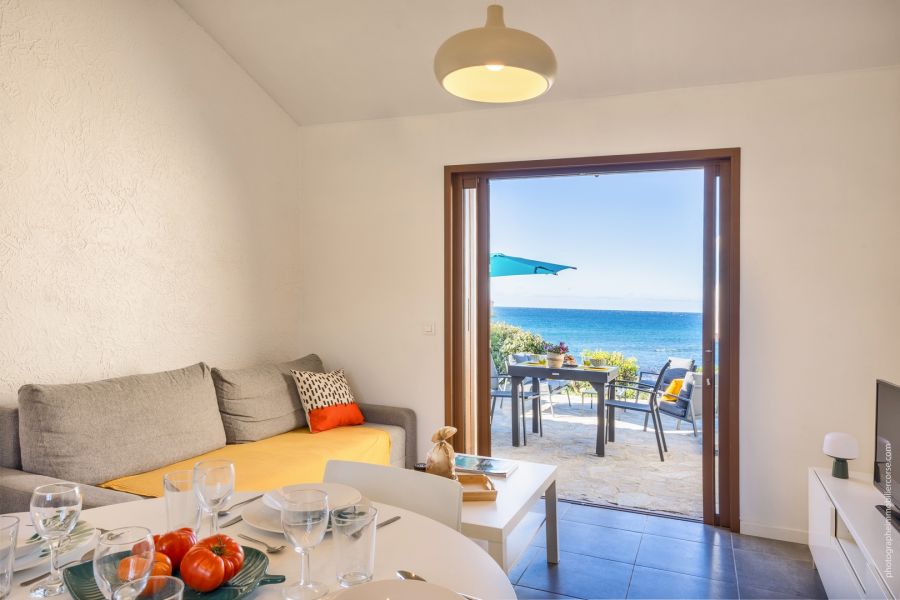 Belle maison climatisée mitoyenne de 46m² pieds dans l'eau, elle propose :
